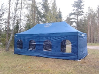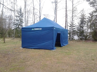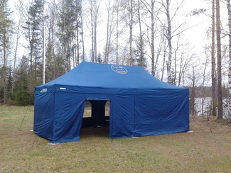 Teltta on kooltaan 4mx8m ja n. 3,5m korkea.